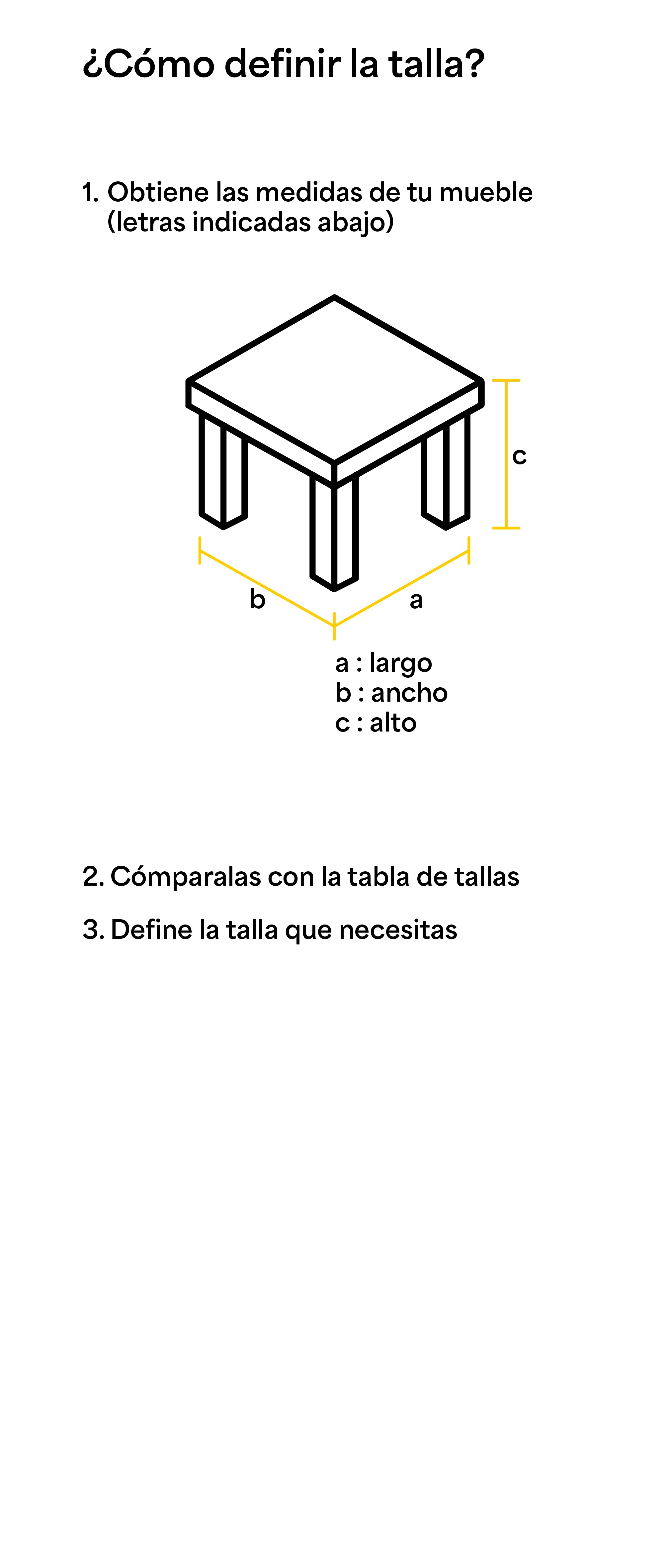 Cordón ajustable en el perímetro inferior y correas para afirmar el cobertor a cada pata del mueble. Así con vientos o movimientos el cobertor no se saldrá.